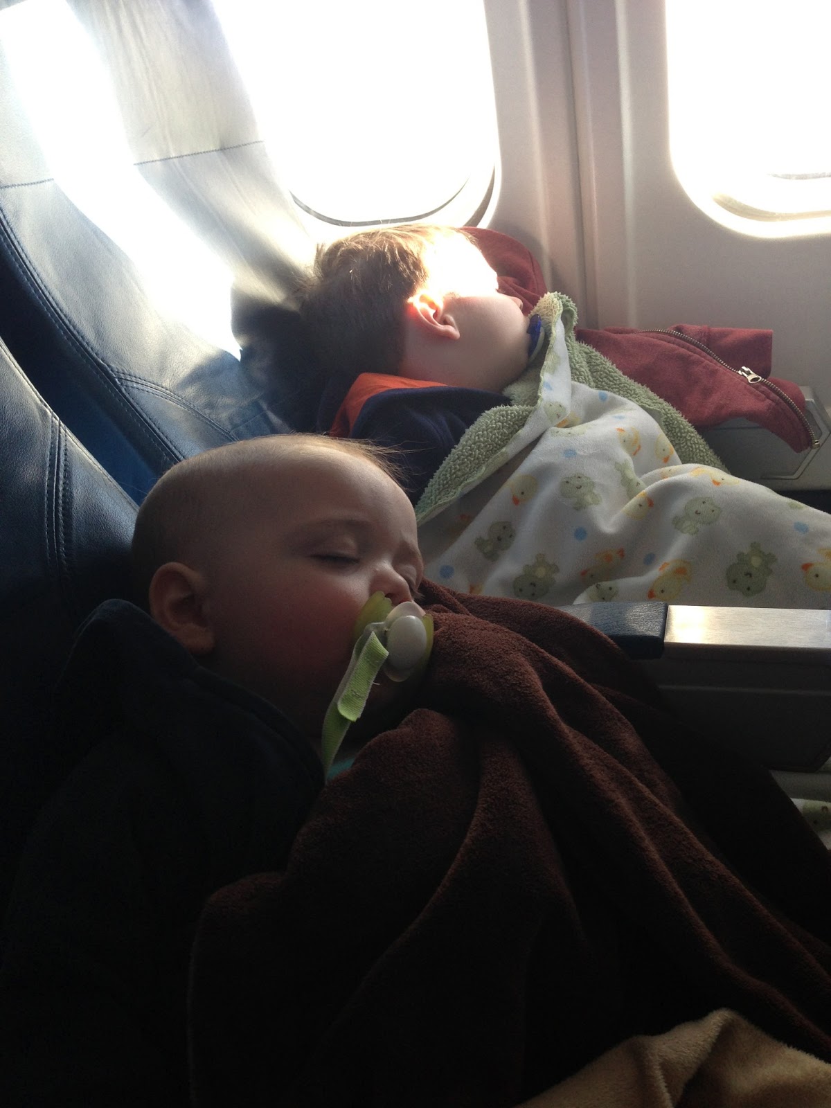 Declan and Grayson sound asleep on the plane heading to New Orleans.